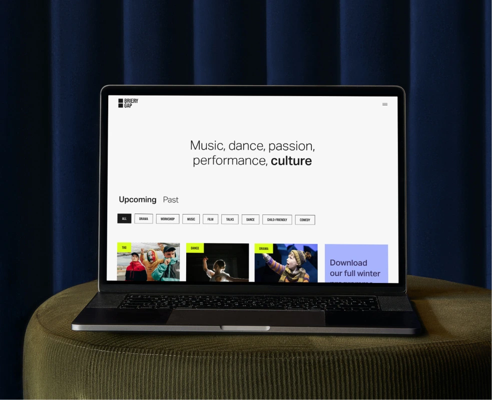 Briery Gap is a cultural centre in Macroom, Co. Cork. As a hub for theatre, music, and film, it offers a diverse range of events, fostering culture, education, and social connection. With a renewed creative and strategic direction, Briery Gap needed a rebrand to celebrate its legacy while embracing the future.